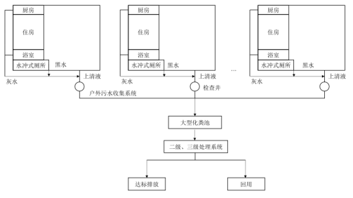 易地搬迁点(23户127人)采用集中治理,工艺A2/O,其余均分散分布采用旱厕 |