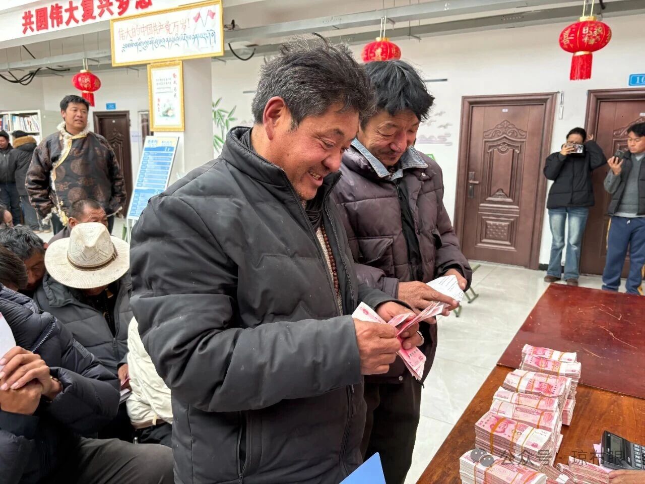 分红仪式现场秩序井然,工作人员逐一核对务工群众身份信息、务工时长及薪酬明细,确保每一笔分红精准兑现。村民们怀着喜悦的心情有序排队,接过沉甸甸的分红资金,指尖摩挲着崭新的钞票,眉眼间满是收获的幸福与对美好生活的憧憬。