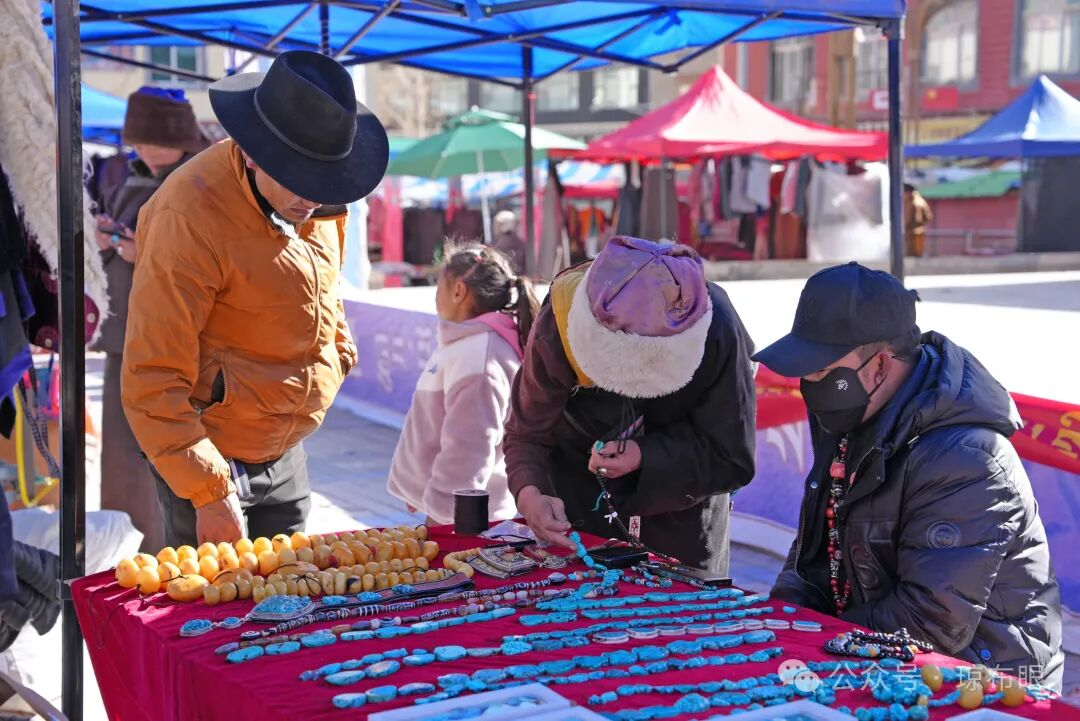 集市上,各类年货琳琅满目,食品百货、手工艺品等一应俱全,13个乡(镇)特色农产品集中亮相、同台竞艳,品类逐年丰富、品质持续精进,市场认可度与美誉度稳步攀升,展现了丁青高原特色农业蓬勃发展的良好势头。