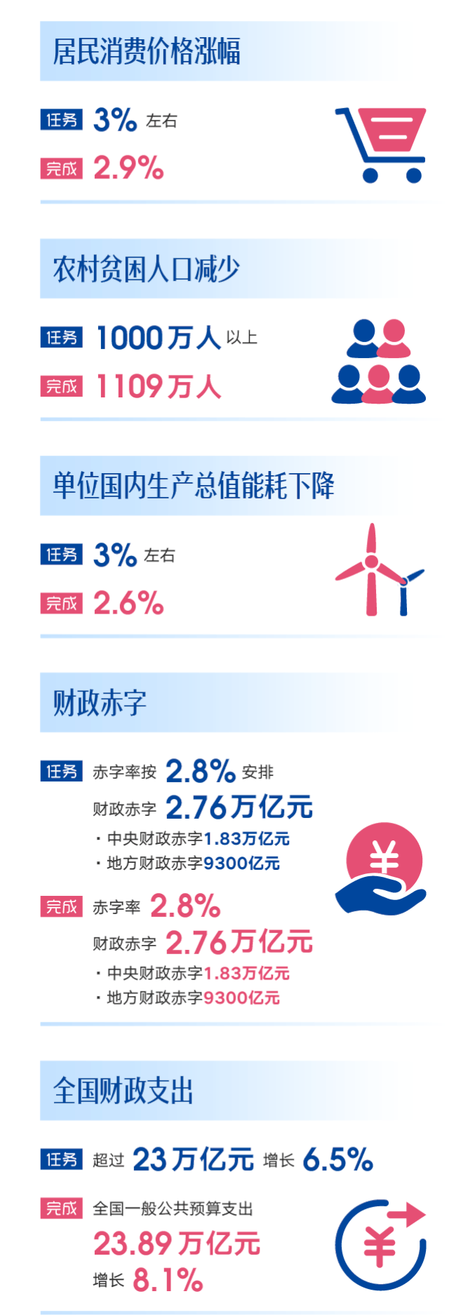 国务院公布2019年《政府工作报告》量化指标任务落实情况