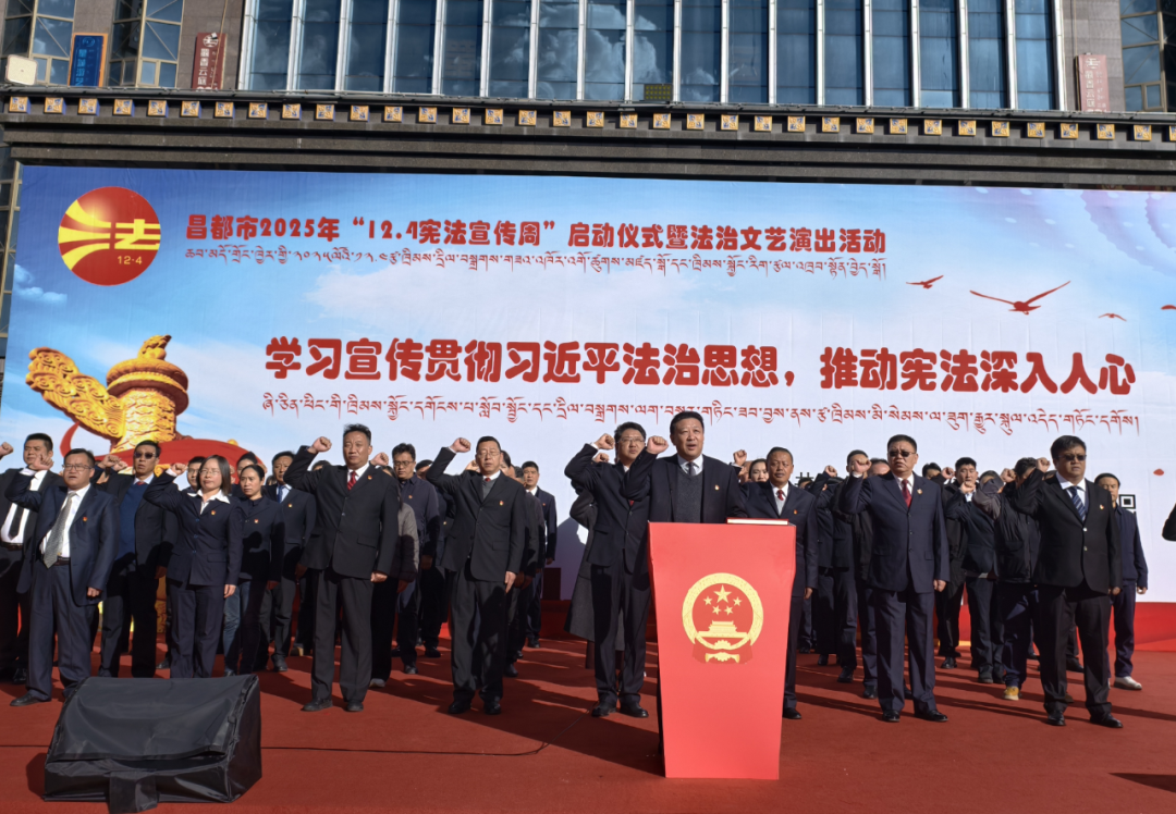 红色法治润三江,康巴大地正气扬!124日是第十二个国家宪法日。市委宣传部、市司法局、市普法办共同举办了以学习宣传贯彻习近平法治思想,推动宪法深入人心为主题的宪法宣传周活动,强化法治宣传教育,引导广大市民争做宪法拥护者、法律明白人。市委常委、宣传部部长、市委全面依法治市委员会守法普法协调小组组长欧珠达瓦出席并宣布2025宪法宣传周系列活动启动。