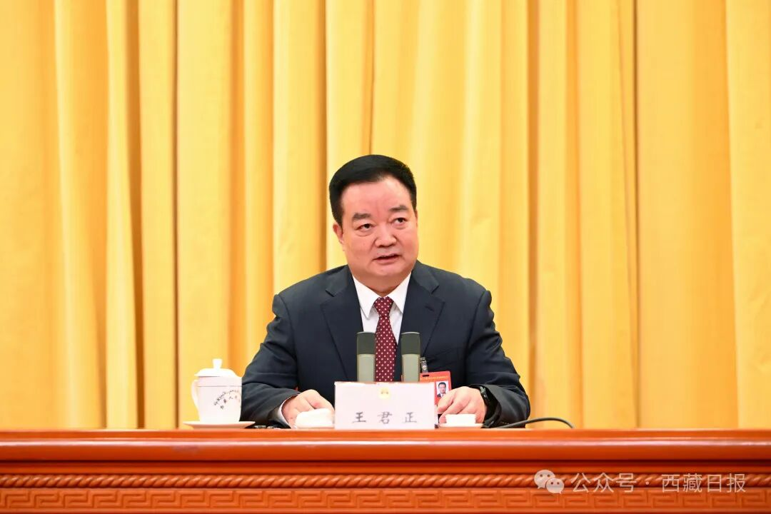 王君正指出,2025年是西藏发展历程中极不平凡的一年,习近平总书记率中央代表团出席自治区成立60周年庆祝活动,听取自治区党委和政府工作汇报并发表重要讲话,极大增强了全区各族干部群众共建中华民族共同体、书写美丽西藏新篇章的信心和决心。自治区党委坚决贯彻落实习近平总书记关于西藏工作的重要指示和新时代党的治藏方略,持续抓好四件大事落实,顺利完成十四五规划主要目标,社会主义现代化新西藏建设迈出坚实步伐,社会大局继续保持和谐稳定,经济高质量发展势头良好,民生福祉不断增进,生态安全屏障日益巩固,边境地区加快建设,作风建设成效明显,呈现出一派欣欣向荣的发展景象。